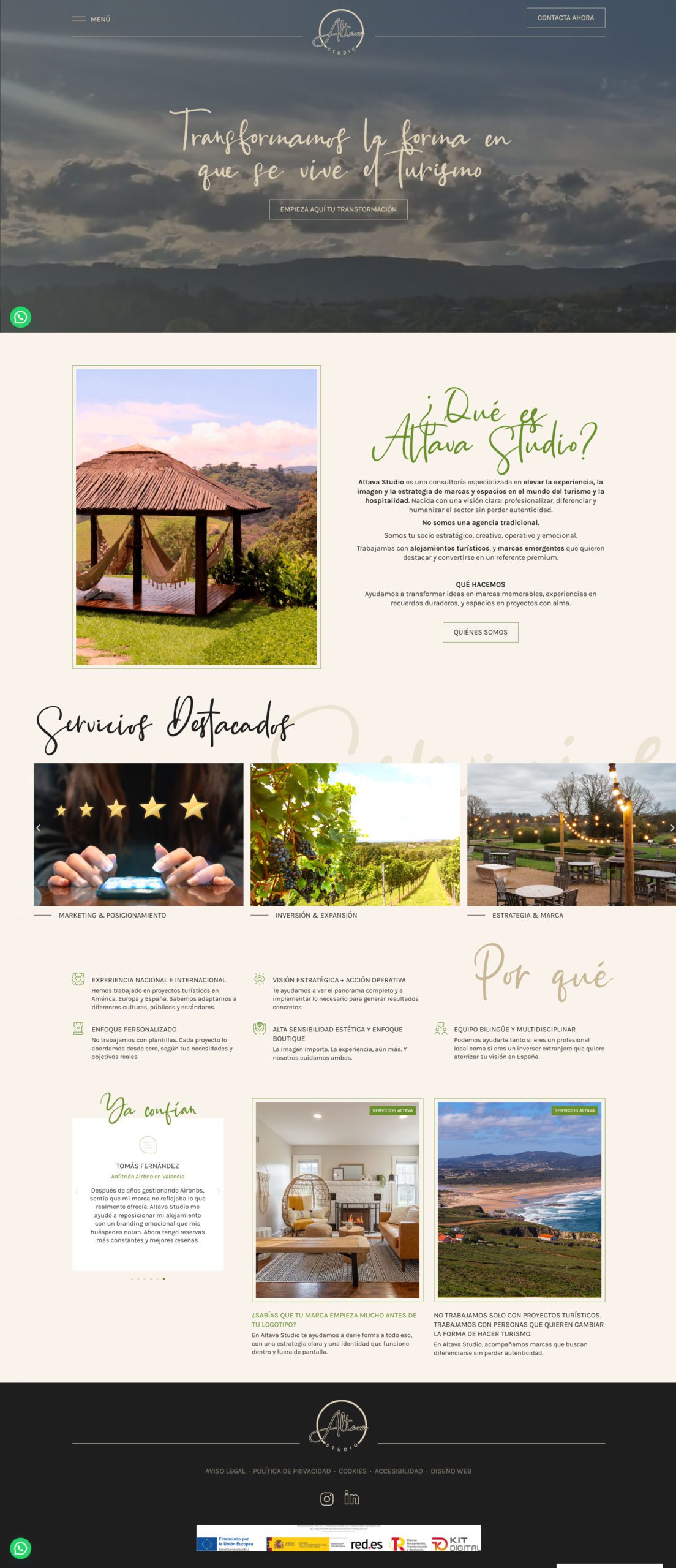 Para acompañar su evolución y reforzar su presencia digital, desarrollamos su nueva web corporativa. El diseño, sobrio y profesional, está pensado para transmitir la solidez de la marca y facilitar el acceso a información esencial sobre su actividad, metodología de trabajo, impacto en el entorno y proyectos actuales.