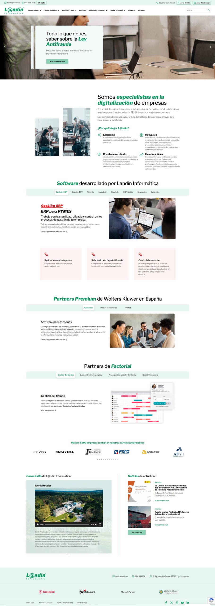 Landín es una empresa con una amplia experiencia en el sector, reconocida por su compromiso con la calidad, la innovación y la excelencia en cada proyecto. Para reforzar su presencia digital y ofrecer una plataforma a la altura de sus servicios, desarrollamos una web corporativa completa, moderna y perfectamente estructurada.